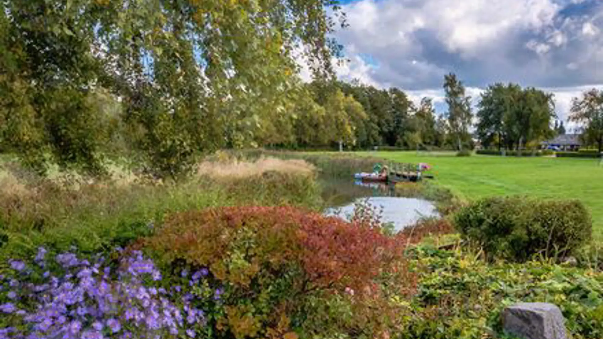 The gardens also contain a collection of Rhododendron species and Iris. Shrubs and trees will be in harmonious bloom throughout the season. The hardy Camellia, cherry trees, Rhododendron, Hotensia and Azalea, as well as many other plants, bloom from May to September.