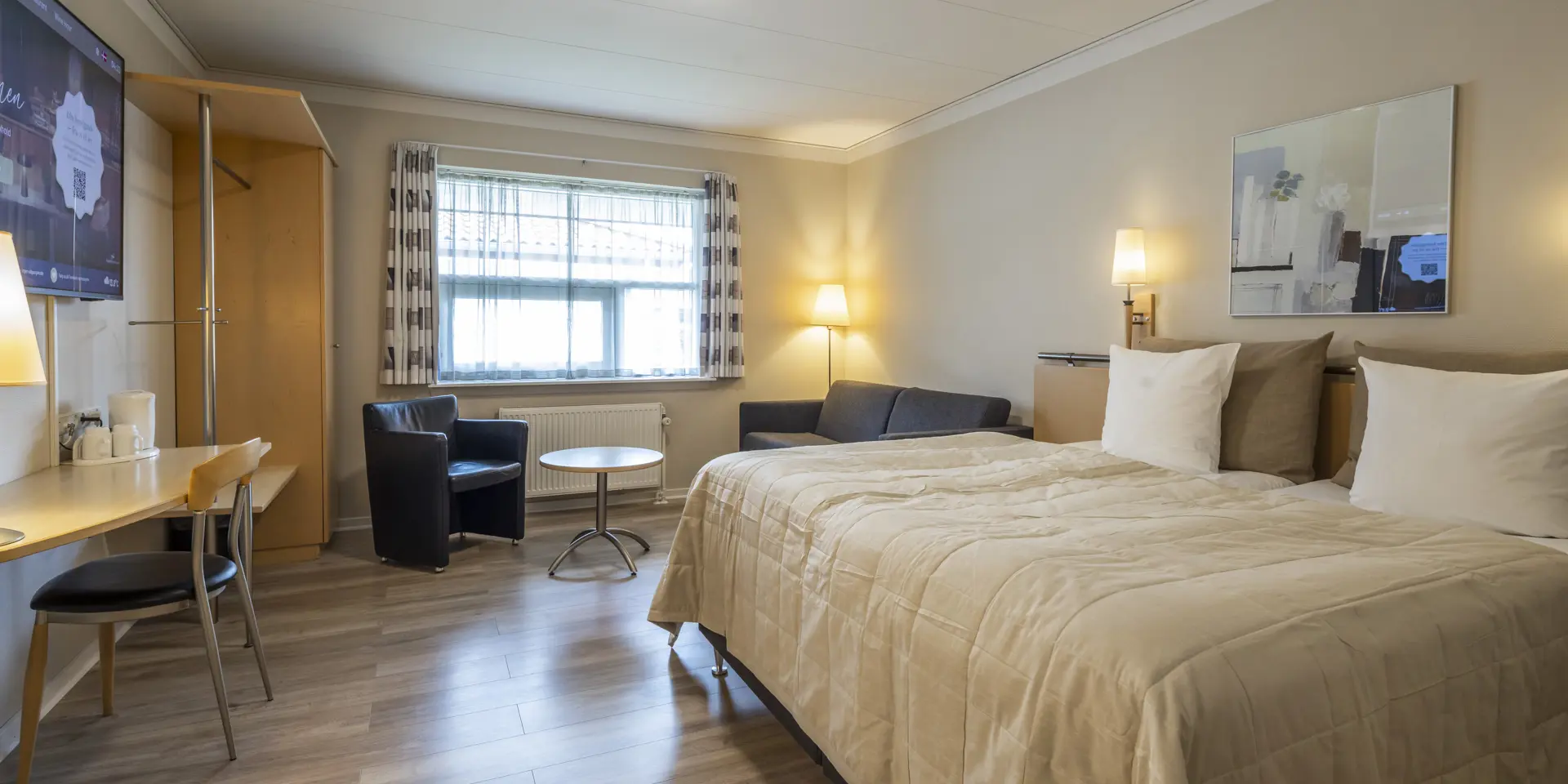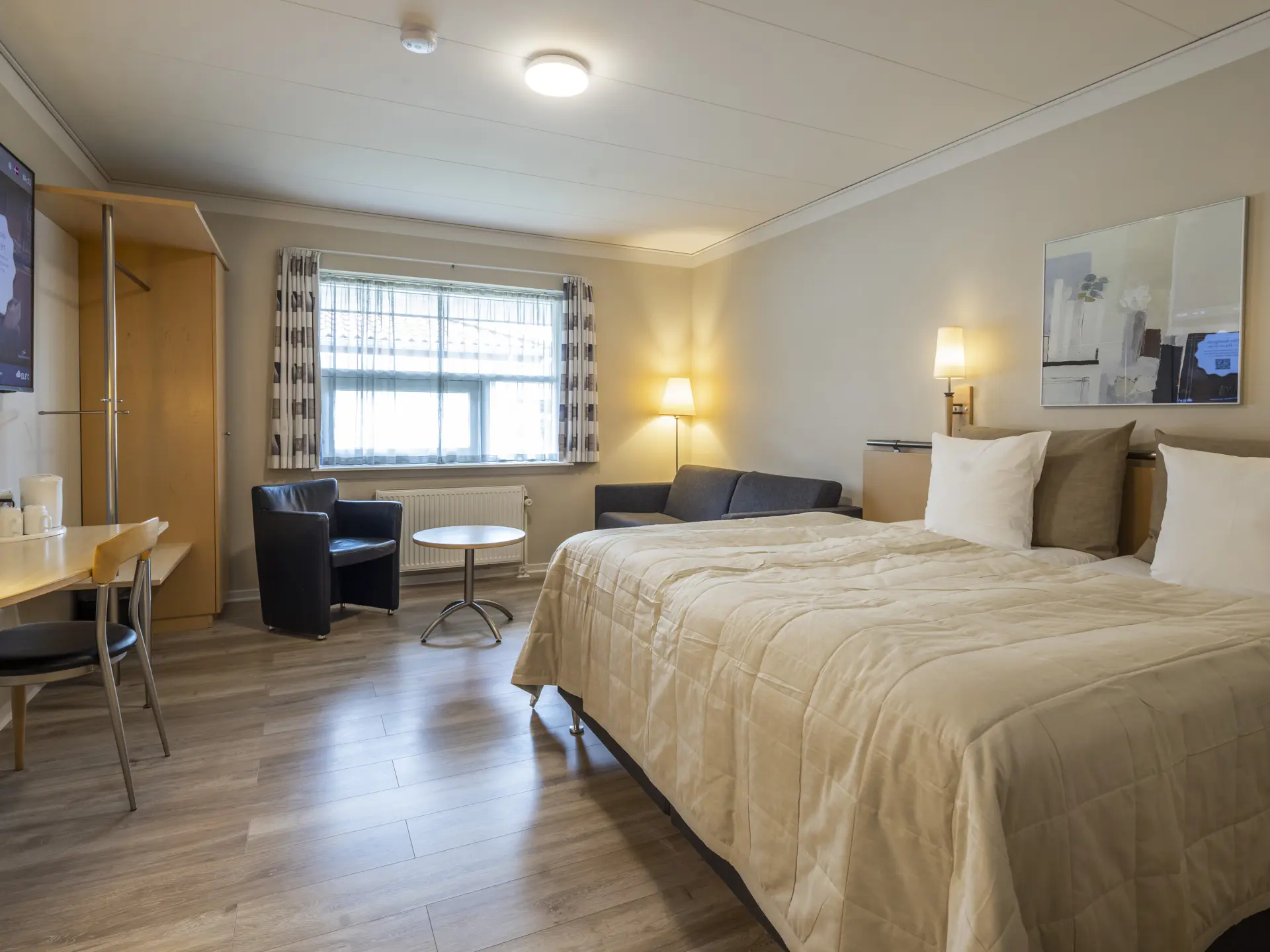 101 rooms in four different categories, all of which with shower, hair-dryer, TV with film channels and free wireless Internet. Bar, restaurant and wine cellar. Indoor lounge with an open fireplace, books, games, flat screen TV and guest lab tops. Outdoor lounge terrace with light and heat. Outdoor playground and playroom next to the restaurant. The reception is open day and night. Weekend stays, golf stays and luxury stays. Charter offers with breakfast already from 5 a.m. Free parking.