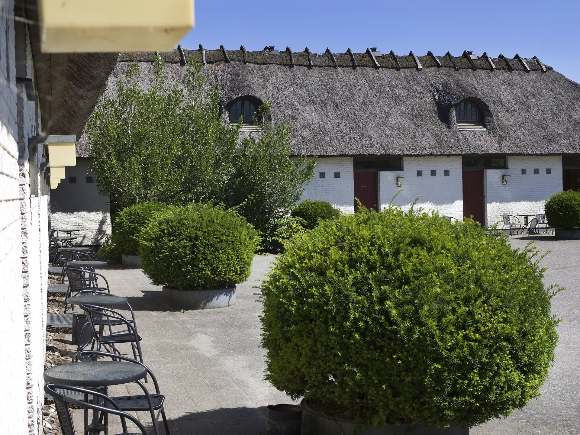 The hotel's rooms are located in the main building or in one of the hotel's annexes, all of which have thatched roofs. The annexes are located directly by the inn. Of course, there is free parking available by the inn.