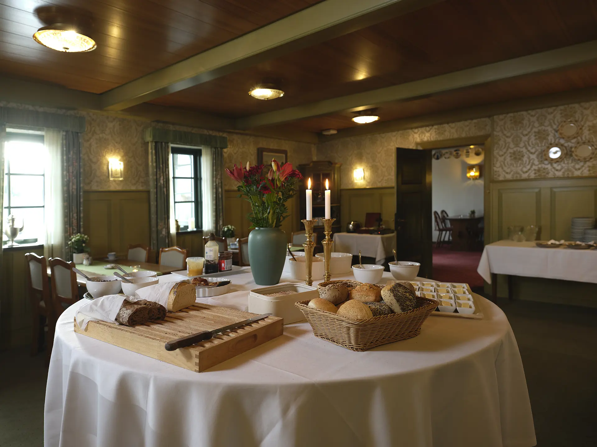 St. Binderup Kro is placed between Aalborg and Viborg. Go exploring the old rooms of the inn and enjoy the museum-like atmosphere and the ticking of the grandfather clock. The inn owner willingly tells about the history of the place. In the beautiful restaurant you can enjoy a large selection of well-cooked meals.