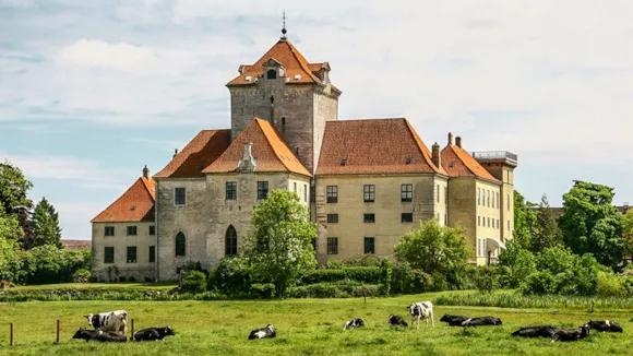 The beautiful and majestic castle is in a big forest belonging to the estate. This historical monument is still a great and pompous castle, where noble women with roots in the old noble Danish families can live. The history of the castle is known from the 13th century. The building of the castle was finished in 1586 by Mette Rosenkrantz, with the addition of a west and south wing and the two characteristic towers. The other wings were built in the 16th and 17th century. In 1893 the castle burnt down, but the outer walls resisted the fire and were used in the rebuilding. During the years between 1894- 1904 the castle was rebuilt.
