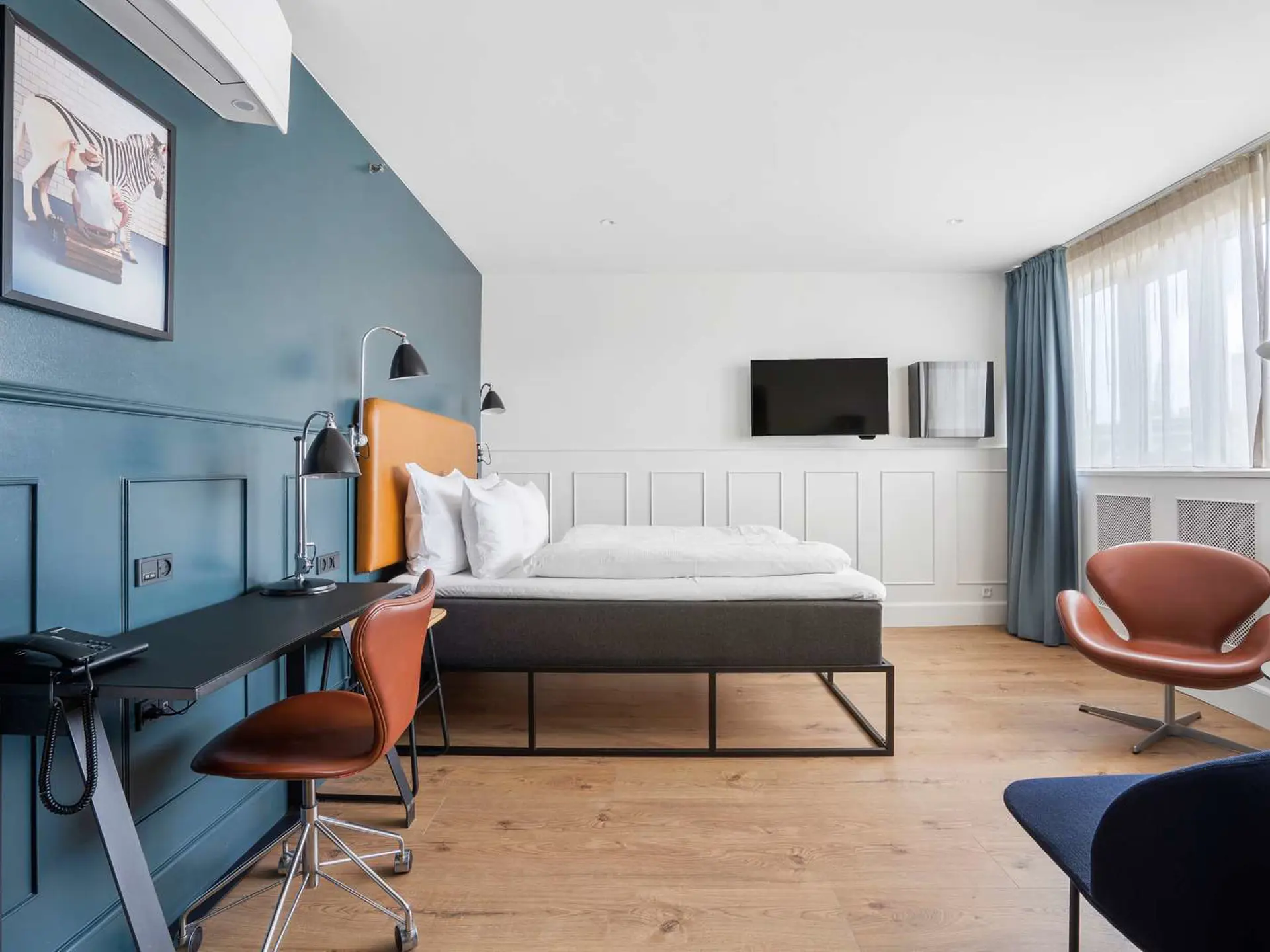 The hotel you will find newly renovated rooms, with classic Danish designs. The hotel is located in the cultural center of Copenhagen, with the Royal Theatre, the Opera and Nyhavn nearby.